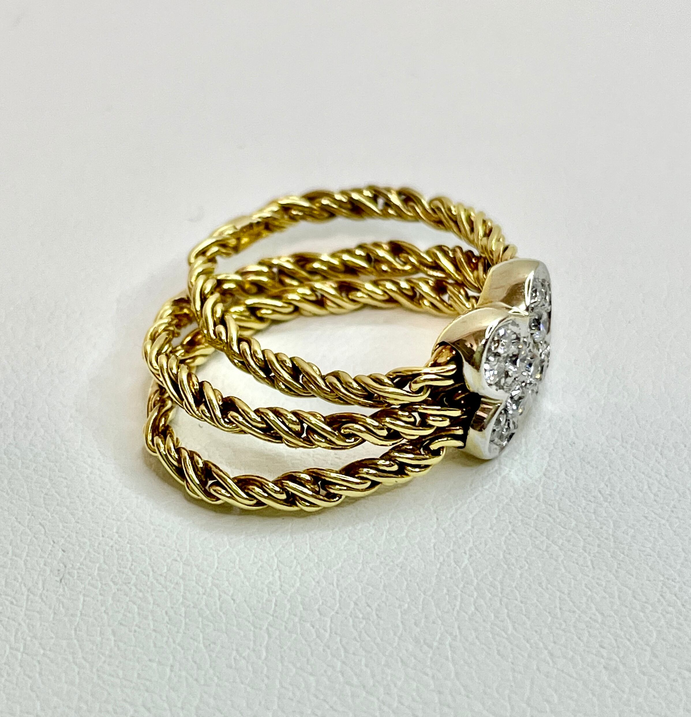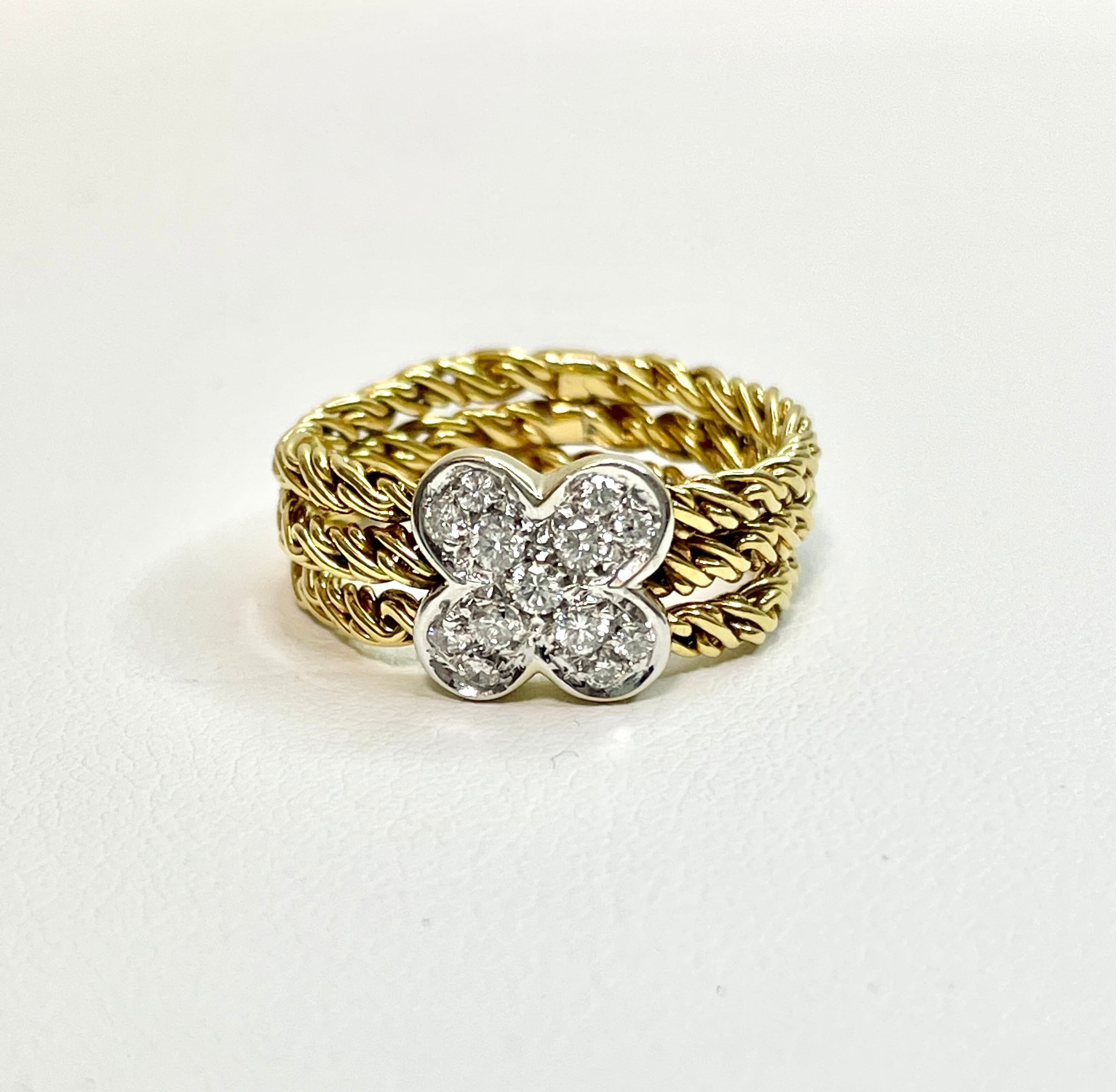 3連のチェーンリングにダイヤモンドのお花がパッと咲いたリングです