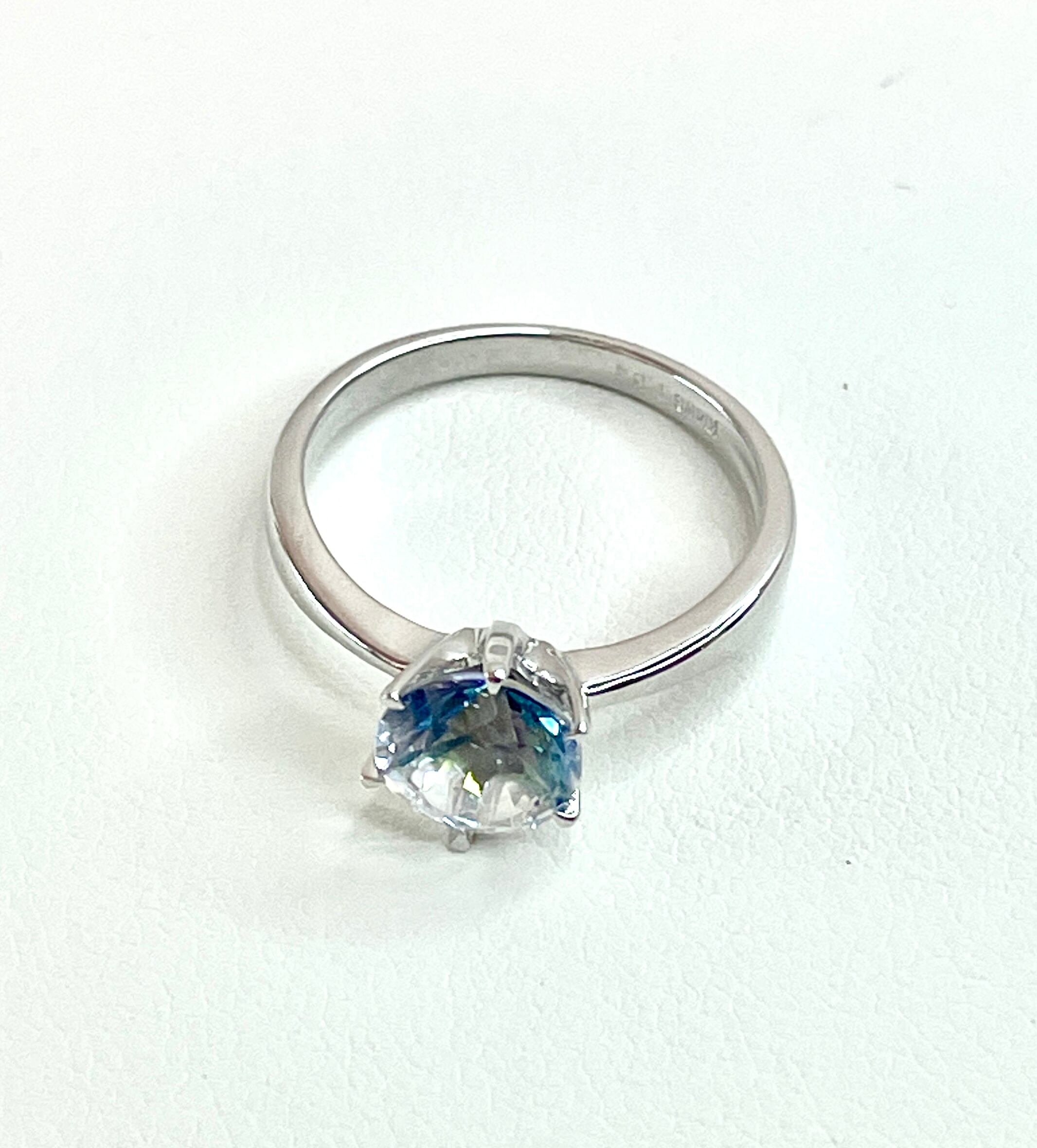お石の色に特徴があり、薄いブルーがベースなのですが、角度によっては、薄い紫が見えたり、ダイヤのような七色なファイヤが見える石です